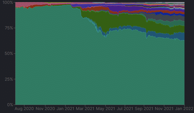 Priebeh dominancie ETH v sektore DeFi. Zdroj: DefiLlama
