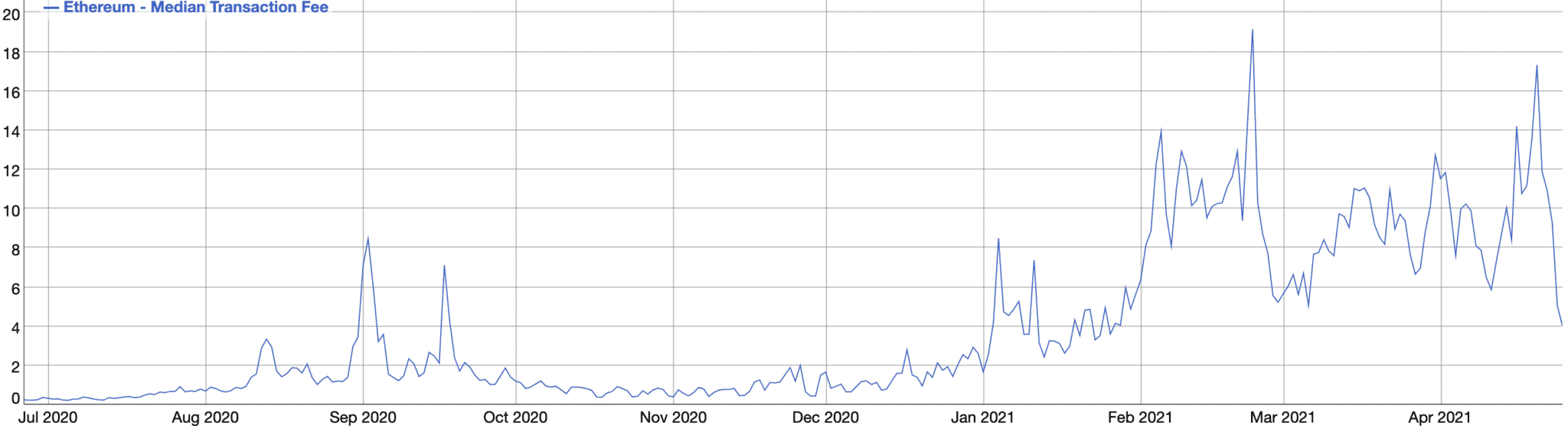 Bohužiaľ, sieť na takýto vzostup záujmu nebola poriadne pripravená. Ethereum stále funguje na sedem rokov starej technológii. Vývojári síce súčasný PoW blockchain postupne vylepšujú, no rýchlosť siete už nestačí. Vo výsledku tak používanie Etherea stojí neskutočné peniaze. Za transakciu zaplatíte 3-10 dolárov a interakcie so smart kontraktmi stoja desiatky dolárov.