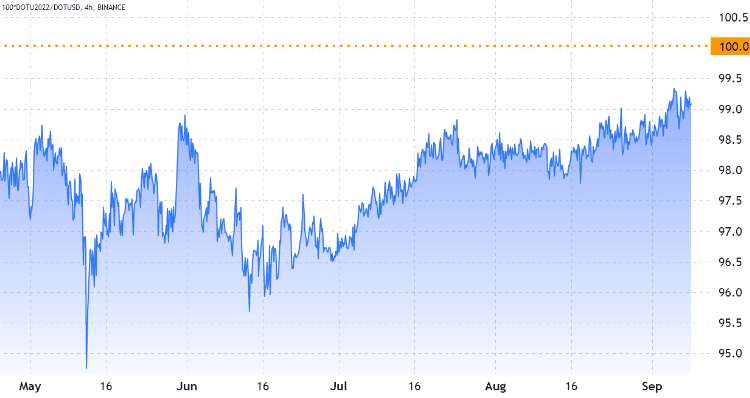 V tomto prípade však treba dodať, že každá burza disponuje vlastným mechanizmom na tvorbu cien a rizík. Aj z tohto dôvodu môžu airdropy častokrát spôsobiť aj zľavnené ceny derivátových kontraktov. Dokonalým príkladom sú štvrťročné kontrakty Polkadot na burze Binance a OKEx, ktoré sa obchodovali so zľavou v porovnaní so spotovými cenami.