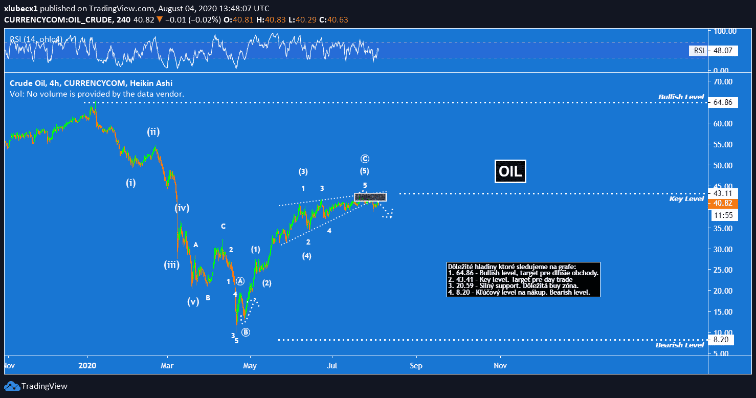 Od dna sa ropa začína pomaly spamätávať a dostáva sa na priemerné hodnoty z minulých rokov. Na grafe sa však tvorí pattern rising wedge, ktorý môže ešte počas leta zamiešať s kartami na trhu. Keďže ide o bearish pattern, dá sa očakávať lokálny pokles.