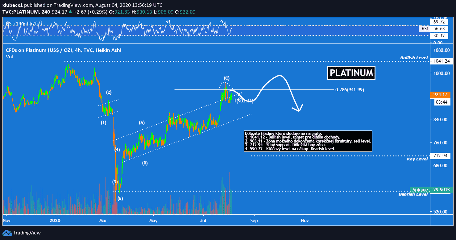 Platina taktiež po veľkom prepade predvádza poriadnu jazdu a láme jednu rezistenciu za druhou. Na ATH má však ešte veľmi ďaleko. V skutočnosti počas augusta očakávam skôr lokálny pokles alebo konsolidáciu na úrovni 900 USD. Veľký bullish cyklus sa však bez problémov môže opäť zopakovať.