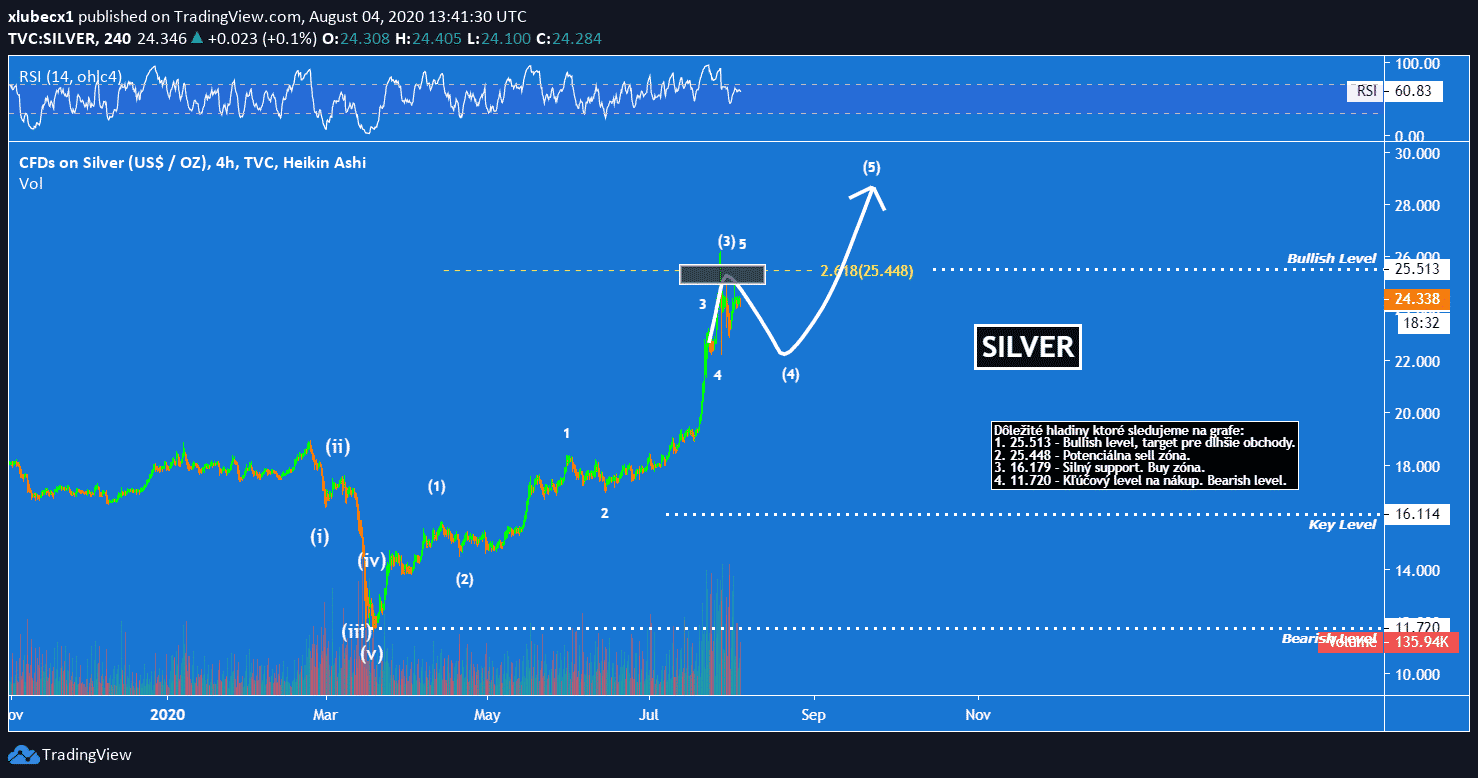 Od začiatku roka sa pomerne dobre darí aj striebru. Po veľkom dumpe z marca je aktuálne vo viac ako 150 % zisku. Ak by sa podobná jazda znovu zopakovala, tak by bola škoda neskúsiť špekulatívne nakúpiť. Podľa teórie Elliot wave rovnako ako v prípade zlata po menšom poklese očakávam pokračovanie trendu a rast až na ATH. Beriem ako vysoko pravdepodobný scenár, ktorý počíta s rastom až na 60 USD za uncu. Od aktuálnej hodnoty by to predstavovalo viac ako 100 % nárast.