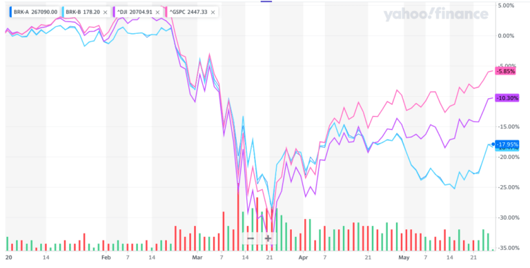 Berkshire Hathaway a Warren Buffet prežívajú katastrofálny rok 2020. Začiatkom mája zaznamenal Berkshire za prvý štvrťrok obrovskú stratu 50 miliárd dolárov. Bolo to predovšetkým v dôsledku strát z investícií – 54,52 miliárd dolárov – väčšinou akcií.