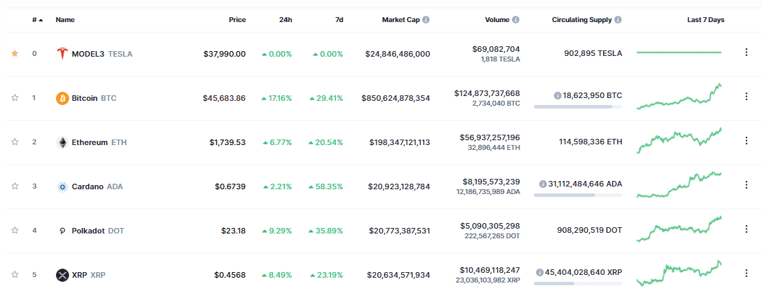 Prudký nárast Pokladot posunul XRP na piate miesto podľa rebríčka trhovej kapitalizácie. Ripple tak 9. februára stráca svoju pozíciu medzi tromi najlepšími altcoinmi po tom, čo Polkadot a Cardano zažili bullrun.
