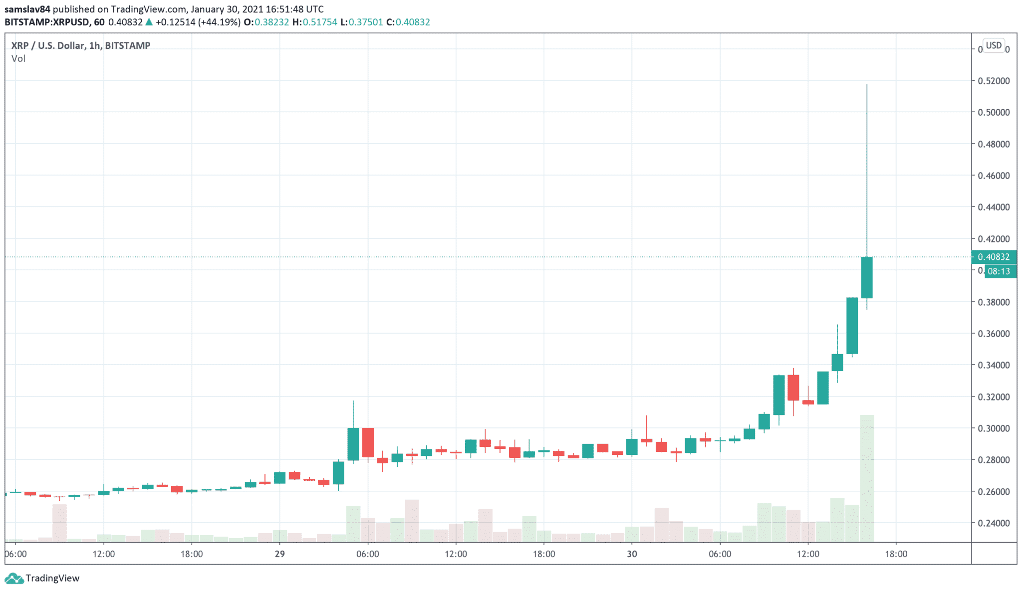 Token XRP práve zaznamenal ďalšiu zaujímavú pumpu. Jeho cena začala nenápadne stúpať už ráno a okolo obeda sme už sledovali 15% zisk. A potom to prišlo. Hodnota XRP dnes z ceny 0,28 $ stúpla až na 0,52 $ (Bitstamp) a nie je úplne jasné, čím to bolo spôsobené.