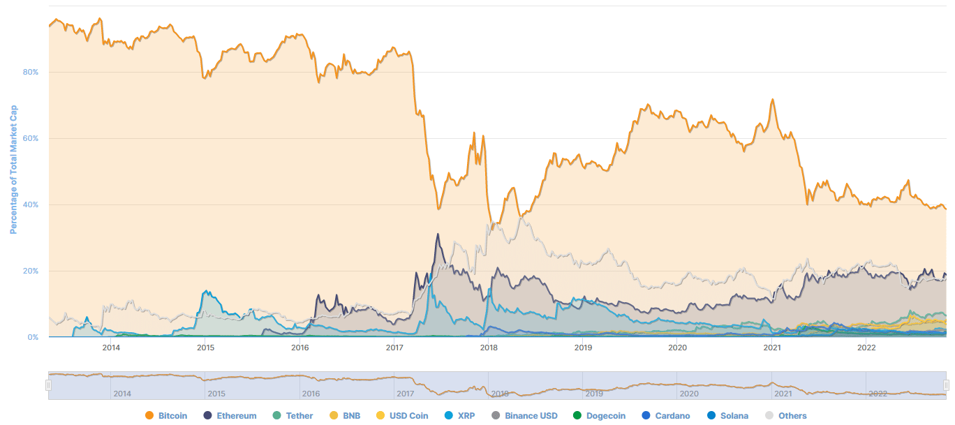 Budú kryptomeny rásť na základe ďalšieho dôležitého ukazovateľa? Dominancia Bitcoinu klesla na 4-ročné minimum a tak sa začína polemizovať o najbližšom raste altcoinov.