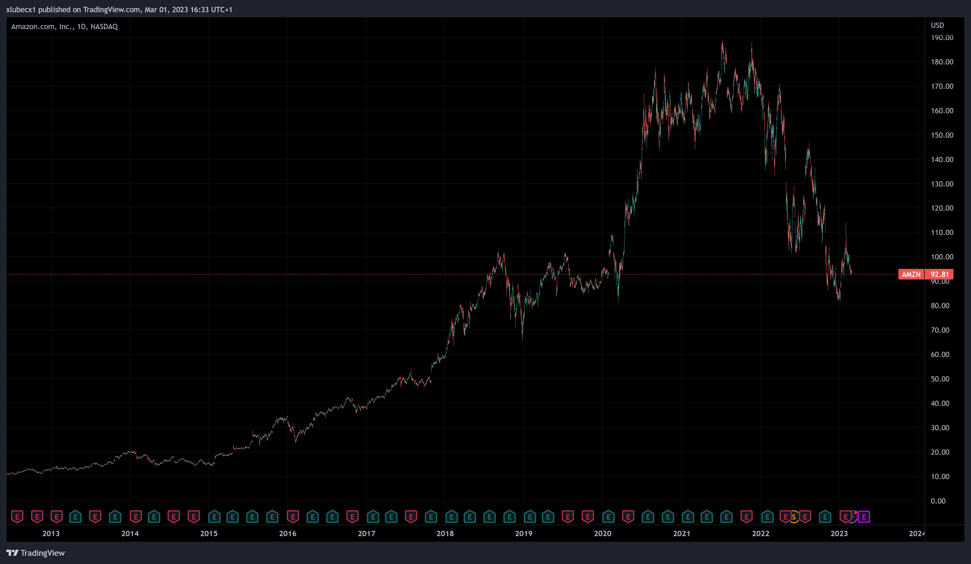 Amazon sa dlhodobo drží medzi najziskovejšími a najpoužívanejšími online obchodmi. Táto stabilita môže zabezpečiť dlhodobý rast na niekoľko nasledujúcich rokov. Okrem online obchodu poskytujú službu AWS (Amazon Web Services), ktorá tvorí 13 % ich tržieb.