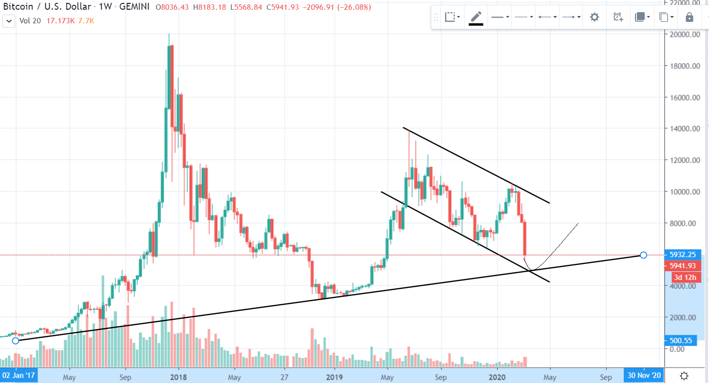 Tento graf naznačuje, že dno by ešte len mohlo prísť. Padnúť by sme mohli až na 4900 $, čím by sa vyplnila predikcia Petra Schiffa. To nás teda vôbec neteší…