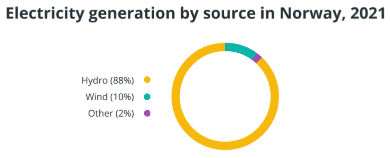Proces spravuje nórske riaditeľstvo pre vodné zdroje a energetiku. V podstate využívajú mix elektrickej energie, ktorá je 100 percentne obnoviteľná. 88 % energie je z vodných zdrojov a 12 % z veterných zdrojov.