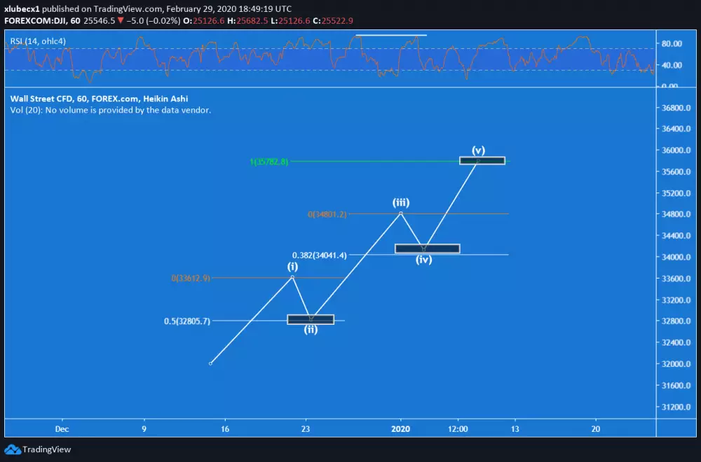 - 5. vlna je posledná vlna v celom tomto impulznom cykle. Vyznačuje sa vytvorením divergencie a rapídnym znížením volume. Je často rovnako dlhá ako prvá vlna. Táto vlna označuje otočenie trendu a vystupuje sa z obchodu.