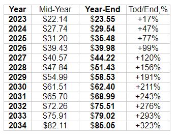 V rozhovore pre Kitco News Neumeyer vysvetlil, že jeho predpoveď je ešte pozitívnejšia. V roku 2023 očakáva dosiahnutie hladiny 30 dolárov a dlhodobo považuje za reálne vytvorenie rastúceho trendu až na 125 dolárov. Okrem Neumeyera opakovane investorom odporúča investovanie do drahých kovov aj Robert Kiyosaki.