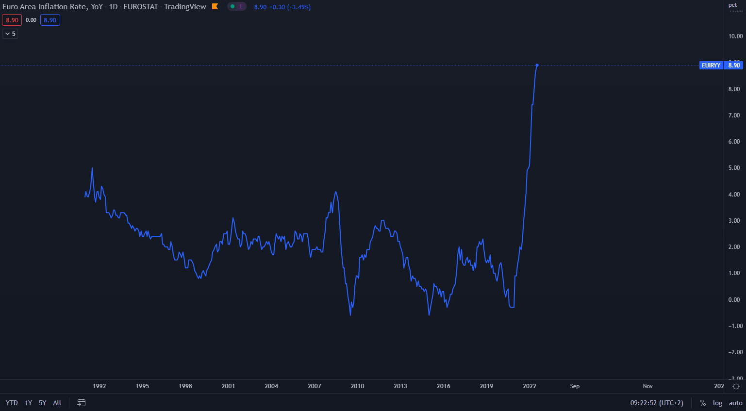 Inflácia v Európe. Zdroj: TradingView