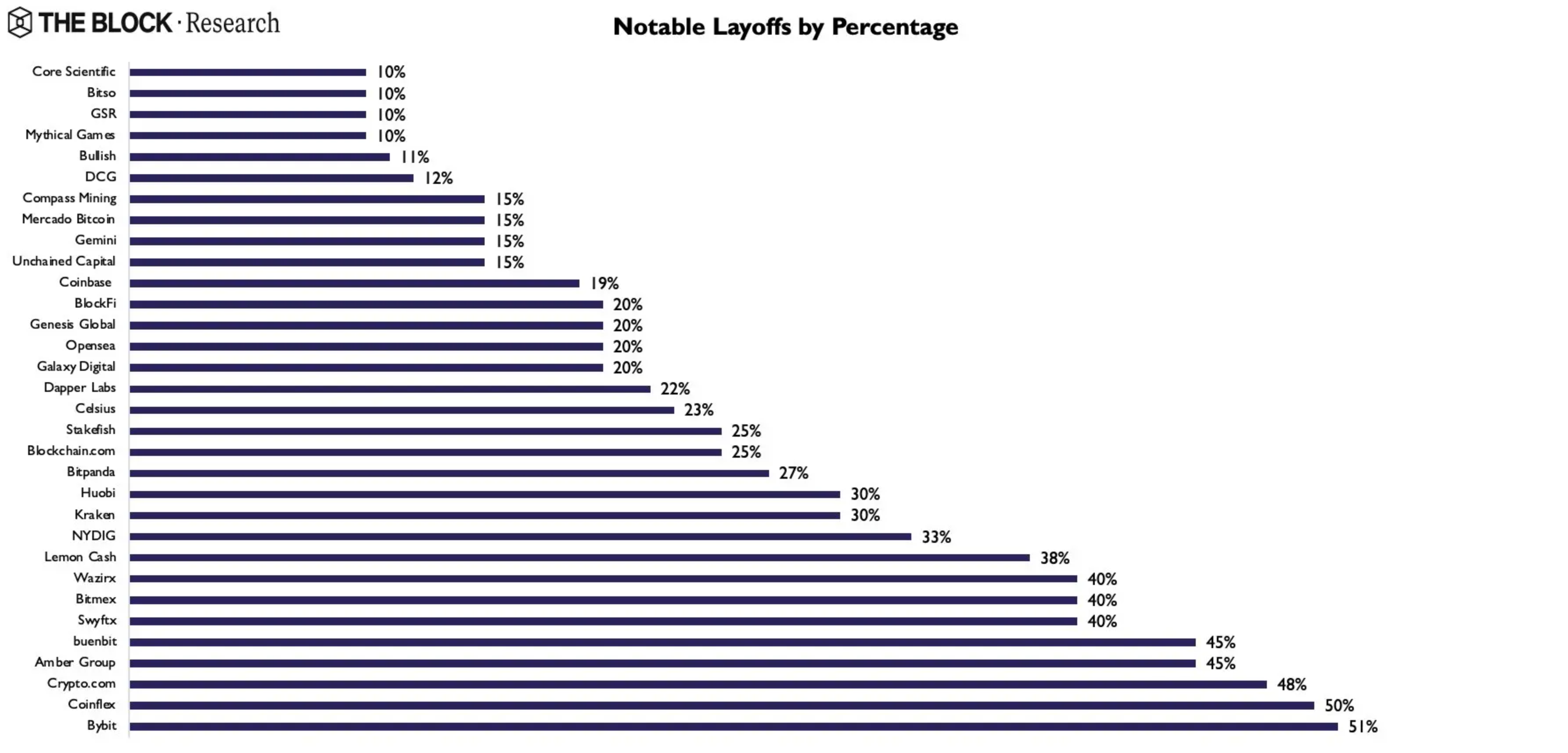 Minulý rok bol pre burzy devastačný. Druhá najznámejšia burza FTX totálne skolabovala a projekty Luna, či Celsius mali rovnaký osud. Opačný trend v počte zamestnancov mala minulý rok spomedzi známych firiem iba burza Binance, ktorá ako sme informovali hľadala 2 000 nových ľudí. Analytik platformy The Block prišiel s porovnaním, ktoré burzy počas bear marketu prepustili najviac ľudí. Na samom konci sa potápa aktuálne 3. najväčšia futures burza.