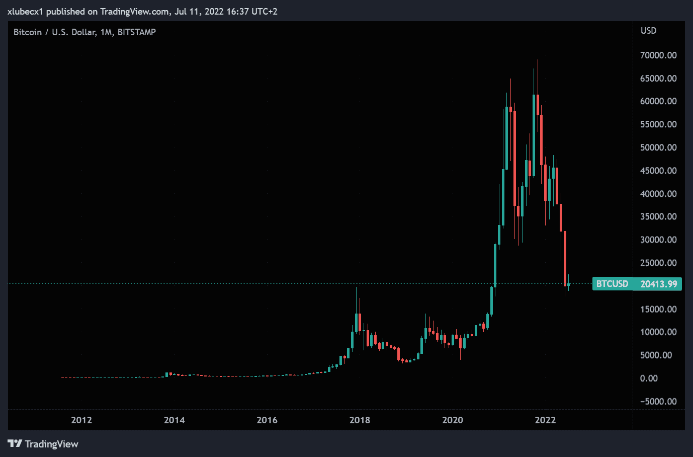 V prepočte na aktuálne ceny ak by sa zopakoval rovnaký pokles, aký Bitcoin zažil už tretíkrát, jeho dno by mohlo byť približne na hladine od 12 000 do 20 000 dolárov. Práve na týchto zónach môže byť pre niekoho zaujímavé vstupovať do trhu. Či už jednorazovo, alebo si vklad rozdeliť na viac nákupov za rôzne ceny.